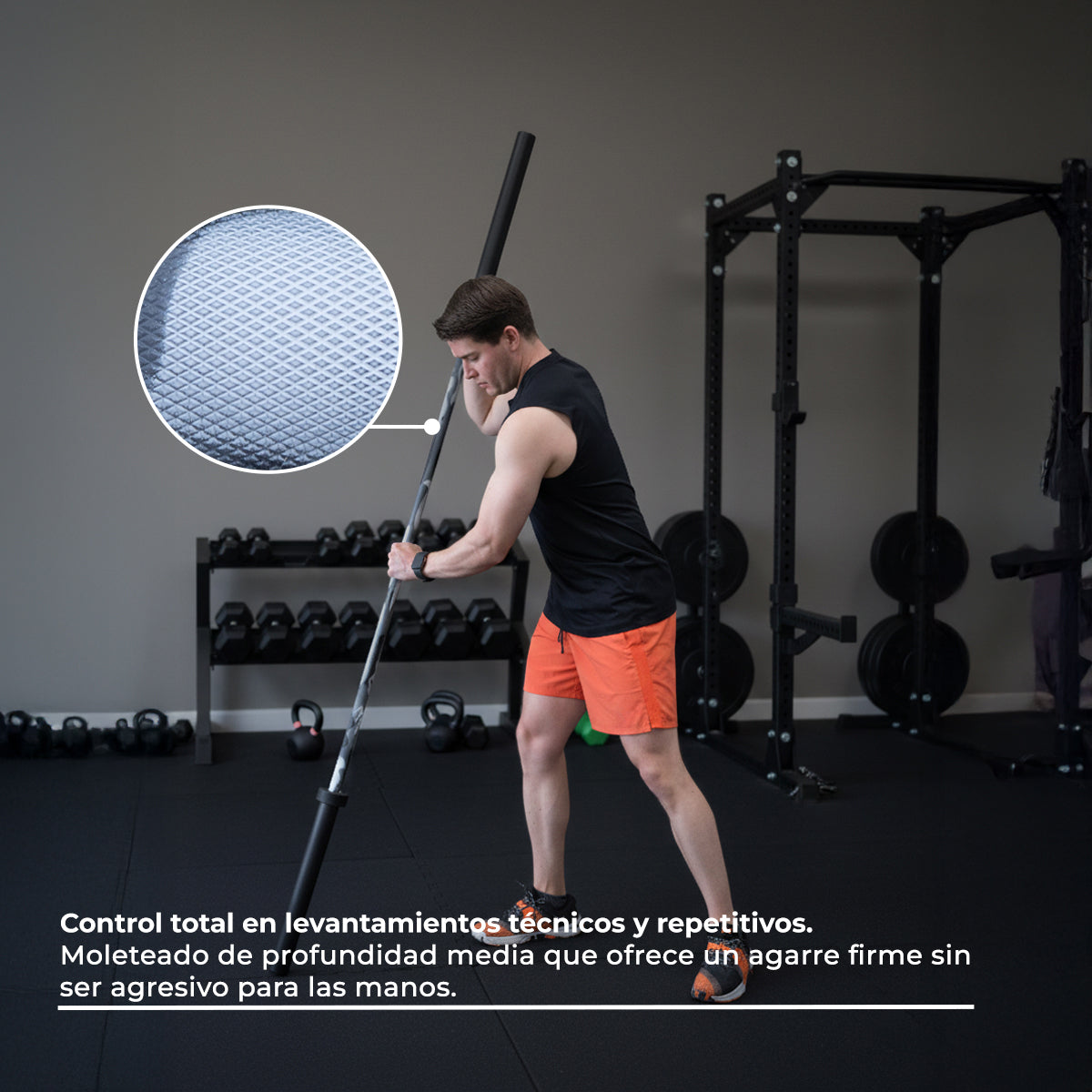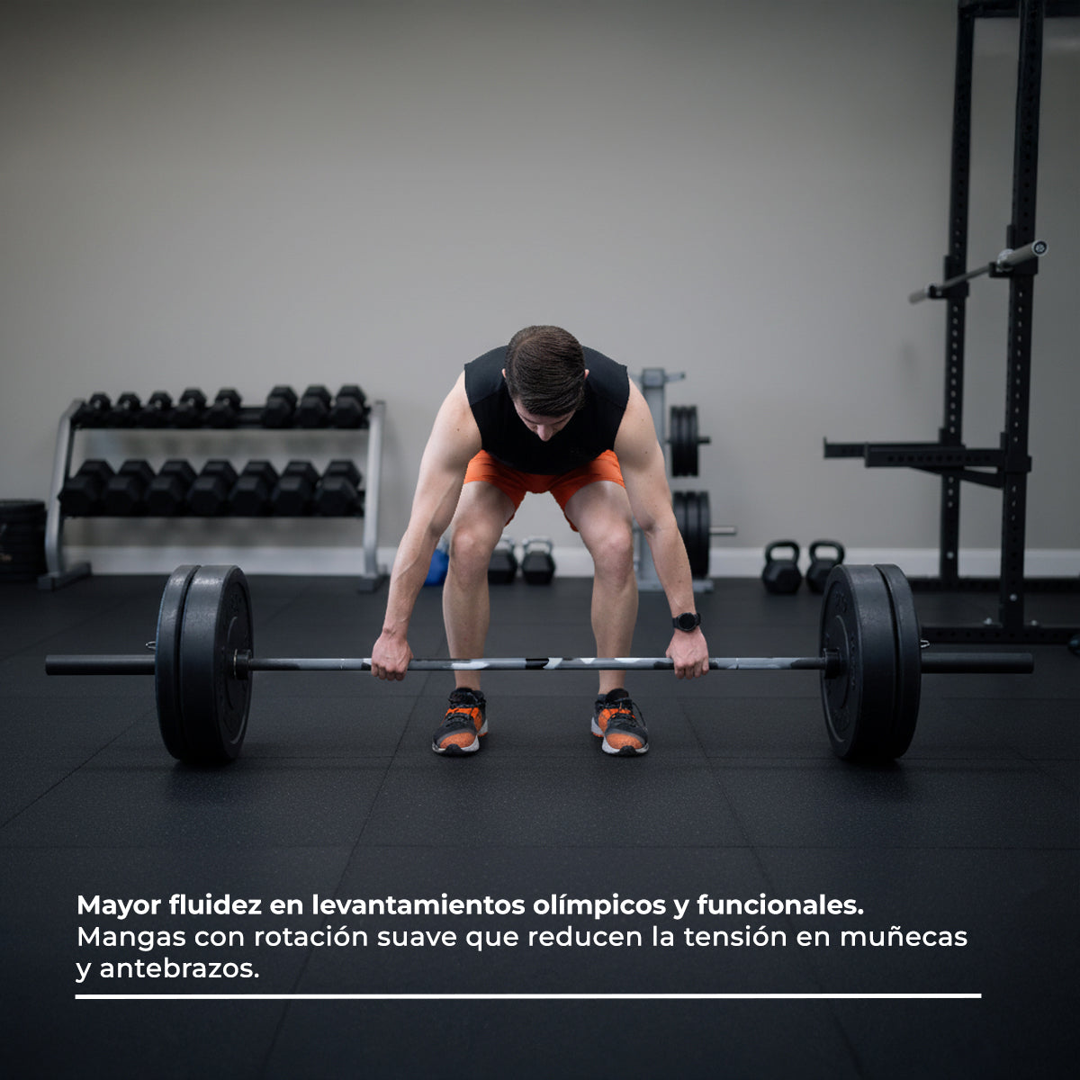 Ideal para halterofilia, powerlifting y entrenamiento funcional, ofrece durabilidad extrema y una rotación suave que mejora tu rendimiento en cada repetición.
