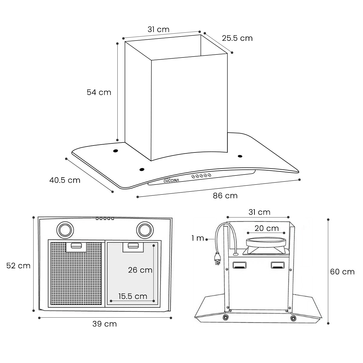 Campana extractora Mia Cuccina Acero inox y Vidro H2 90cm