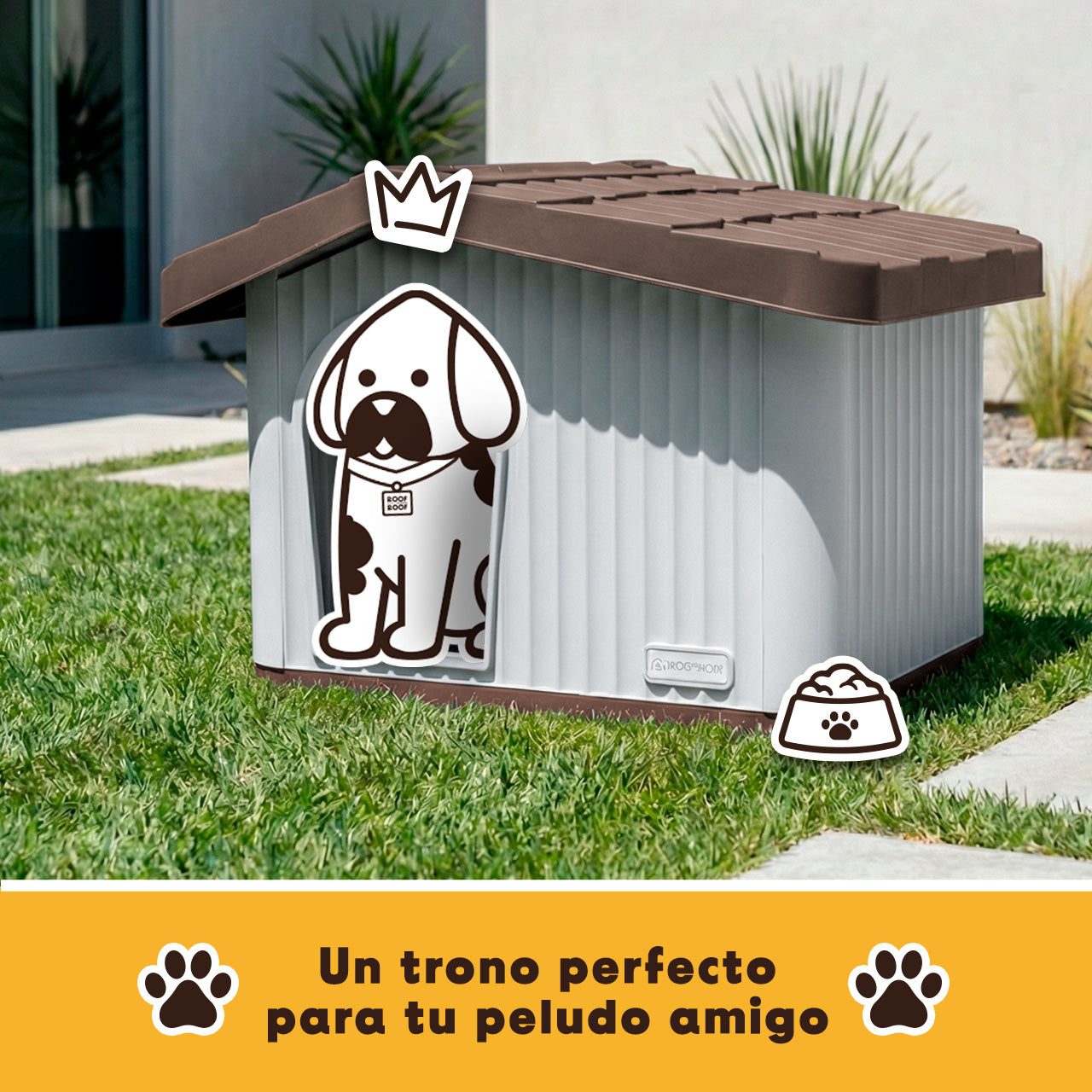 Esta casa para perro exterior está hecha con materiales resistentes a la intemperie y fáciles de limpiar, ideales para mantener un espacio saludable.