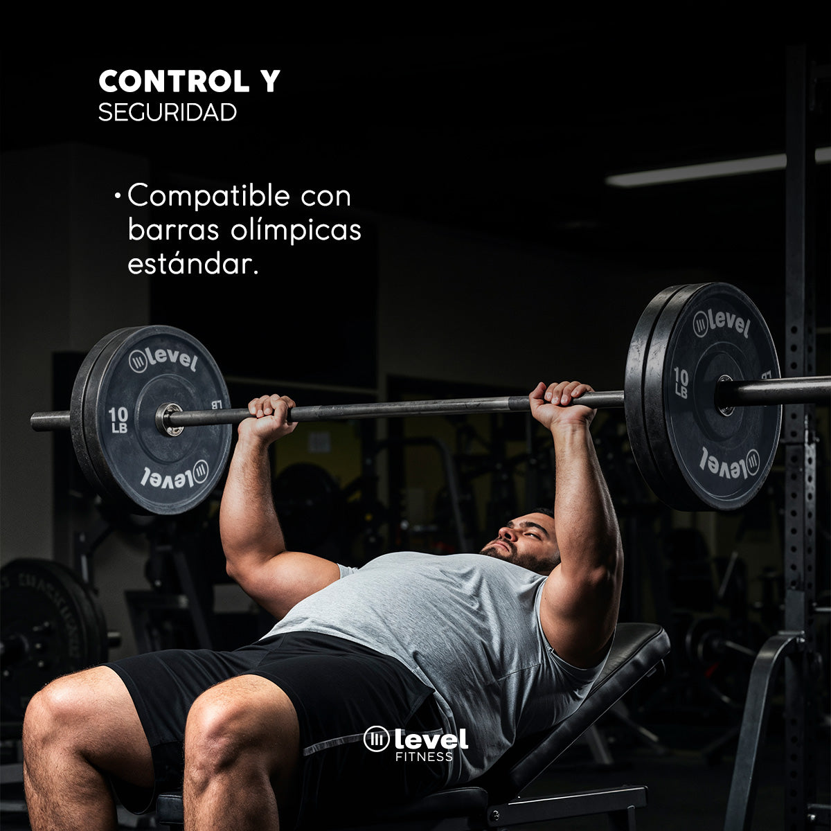 Puedes usarlos junto con nuestras barras olímpicas profesionales LEVEL FITNESS o por separado. Estos discos amplían las posibilidades de tus entrenamientos, ideales para levantamiento de pesas y más.