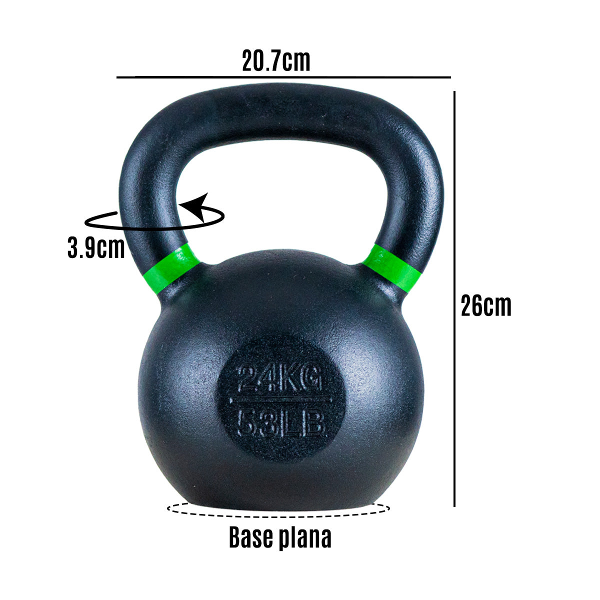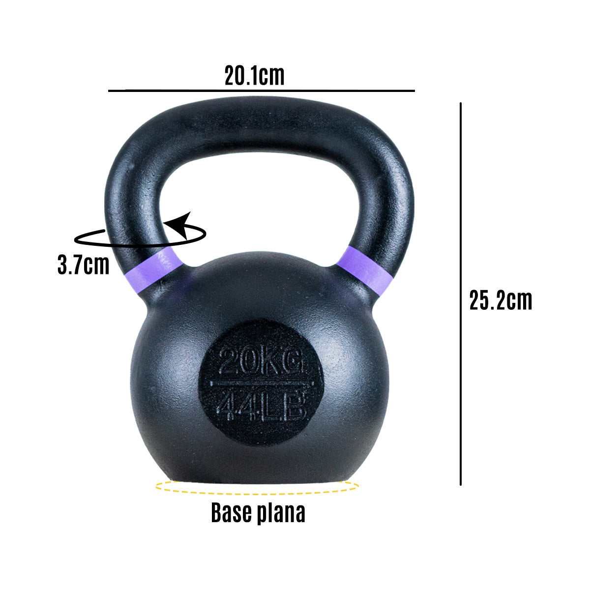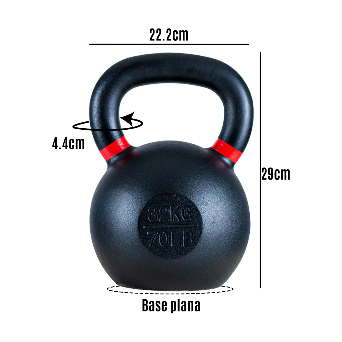 Nuestra pesa rusa de hierro fundido está fabricada con materiales de alta calidad, garantizando durabilidad y resistencia para soportar entrenamientos intensos y prolongados. Una inversión confiable para tu rutina fitness por muchos años.