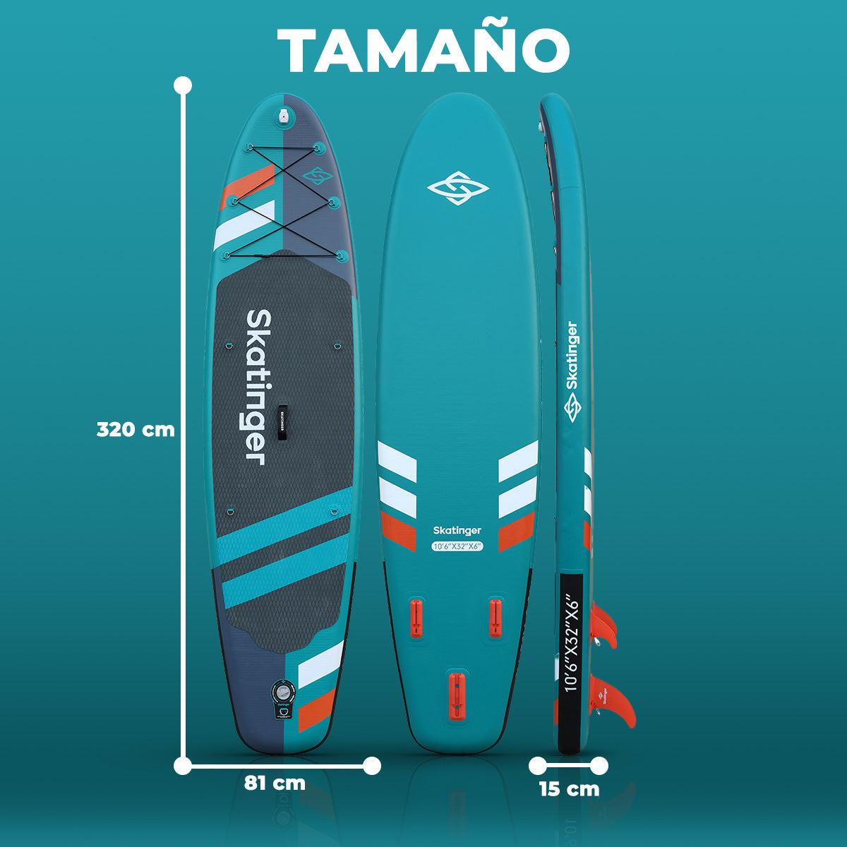 Skatinger Tabla De Remo Inflable Jade, 10´6 Pies X 6 X 32 Pu