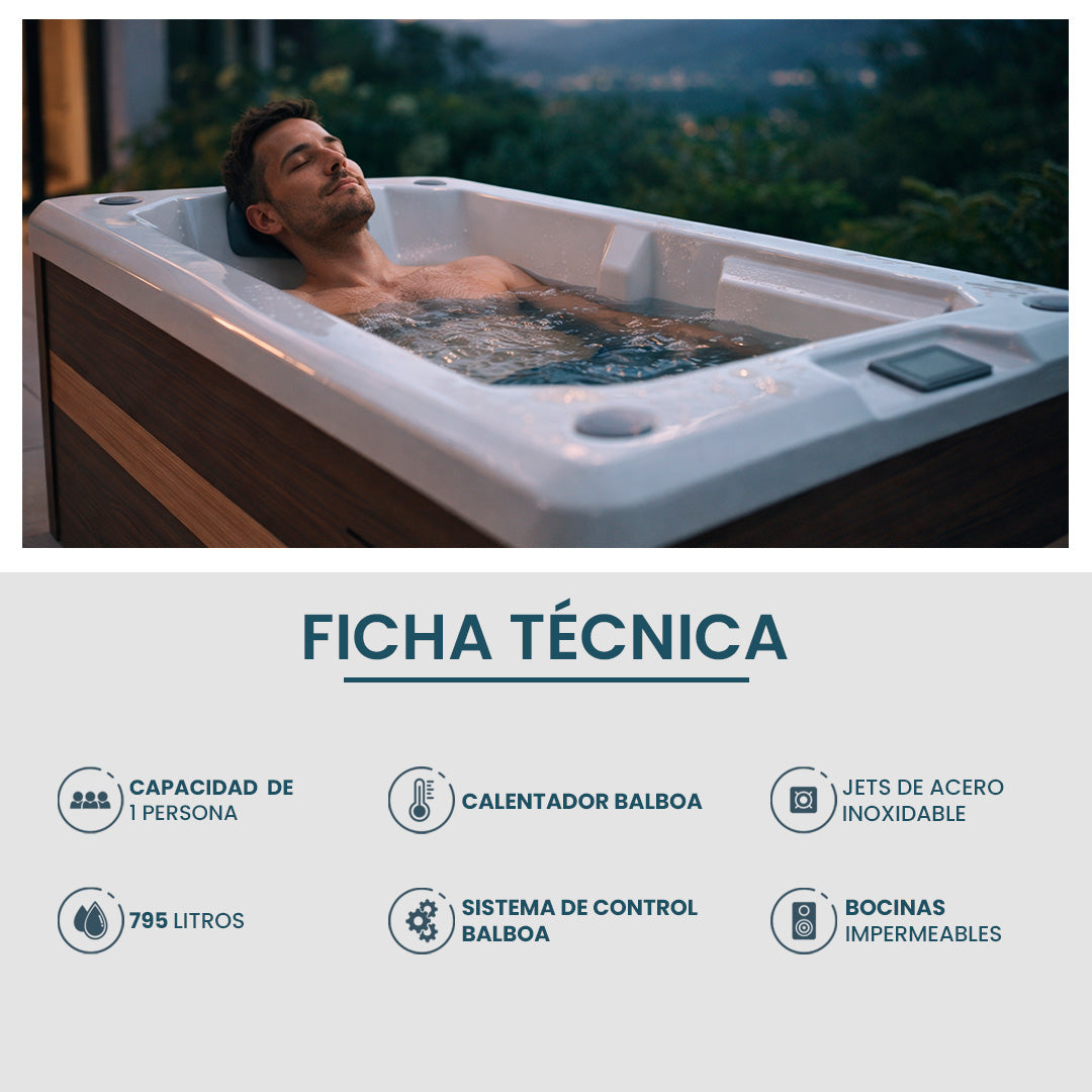 La Tina de Inmersión Fría Iseo es ideal para crioterapia, recuperación muscular y bienestar en casa. Diseñada para exteriores, permite realizar inmersión fría (5°C) con control total desde panel digital o WiFi.