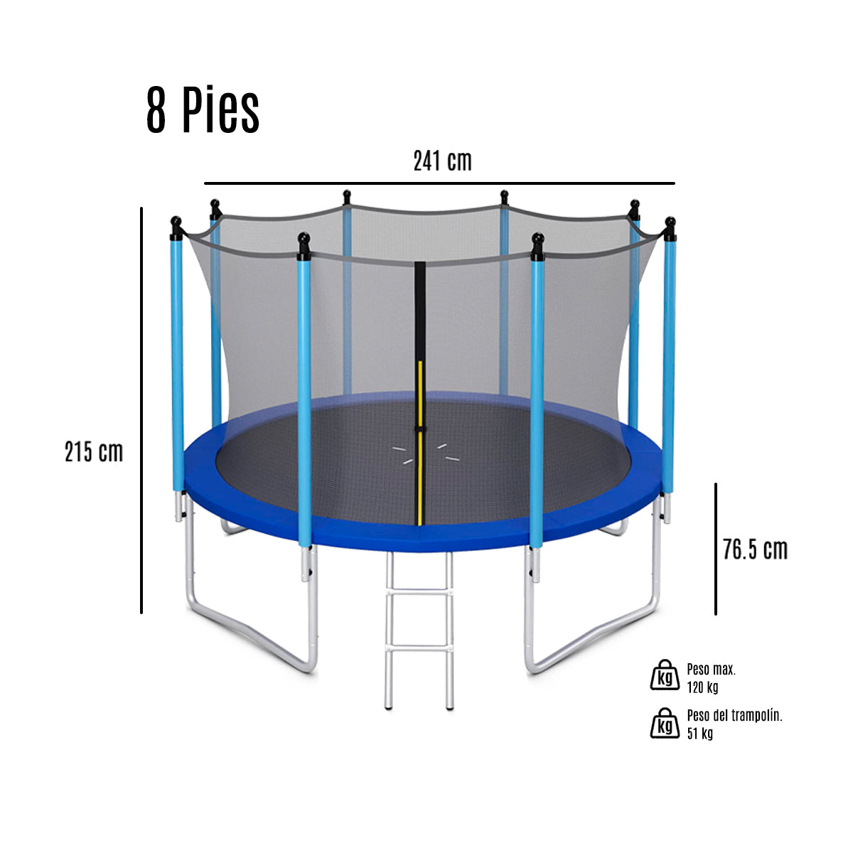 Con un tamaño de 8 pies y una capacidad de hasta 181 kg, este brincolín es el juguete ideal para niños y niñas de todas las edades. ¡La diversión está garantizada para todos, desde los más pequeños hasta los más grandes!
